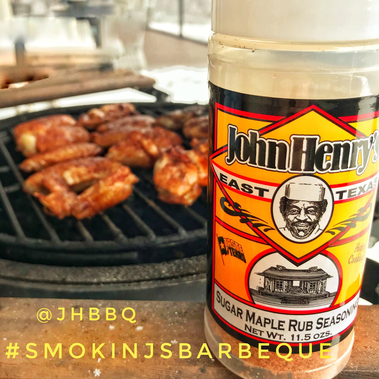 About 15-20 minutes before you are ready to smoke, apply your favorite rub. Because I don’t care for spicy wings, we are using a sweet rub, John Henry’s Sugar Maple Rub.