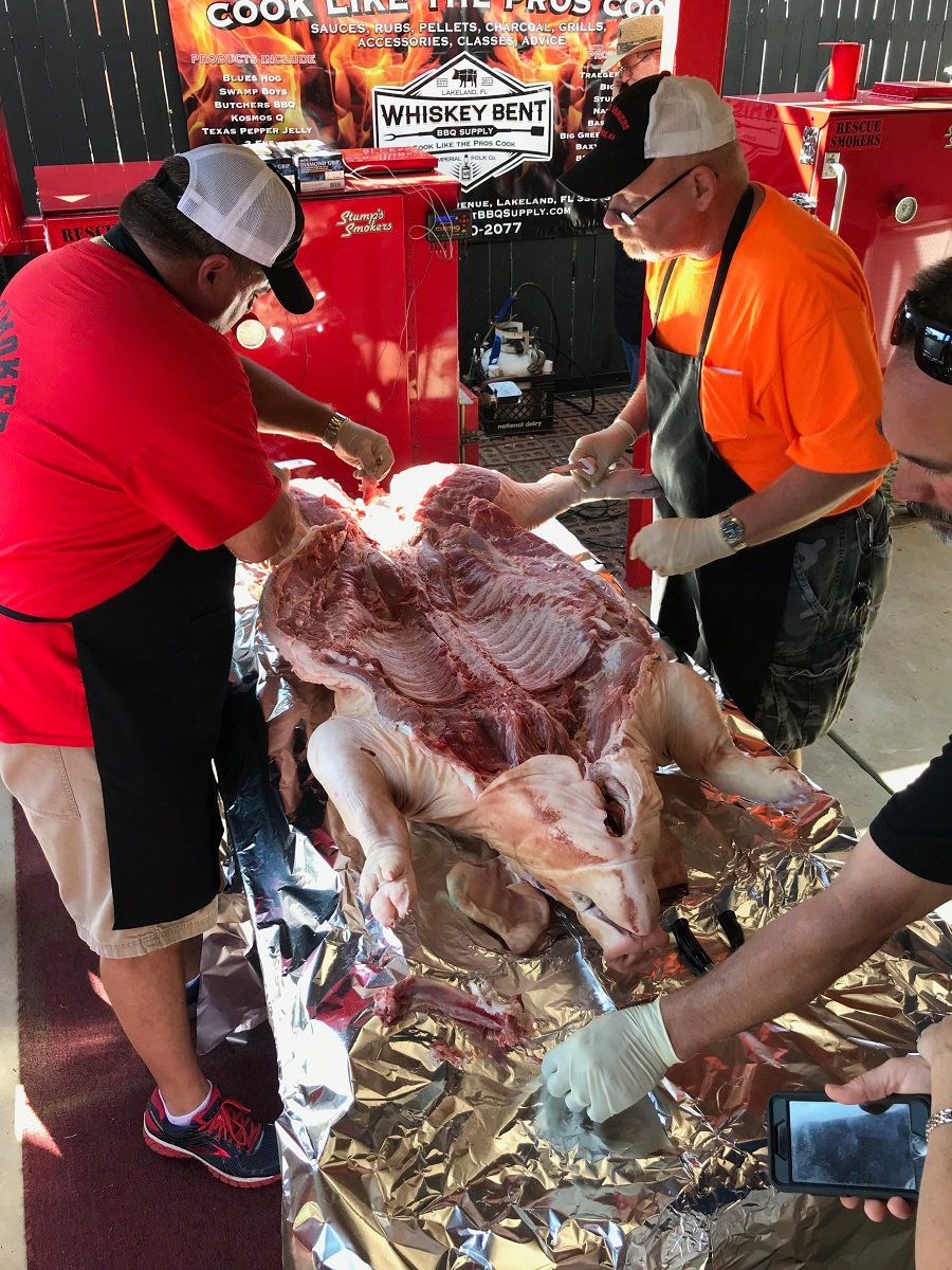 We do not have whole hog experience, nor a cooker to hold a minimum 85 lb hog, so Robby Royal, whom you may have seen on television, winning the 2013 BBQ Pitmasters Competition; allowed Doug to participate on his cook team.