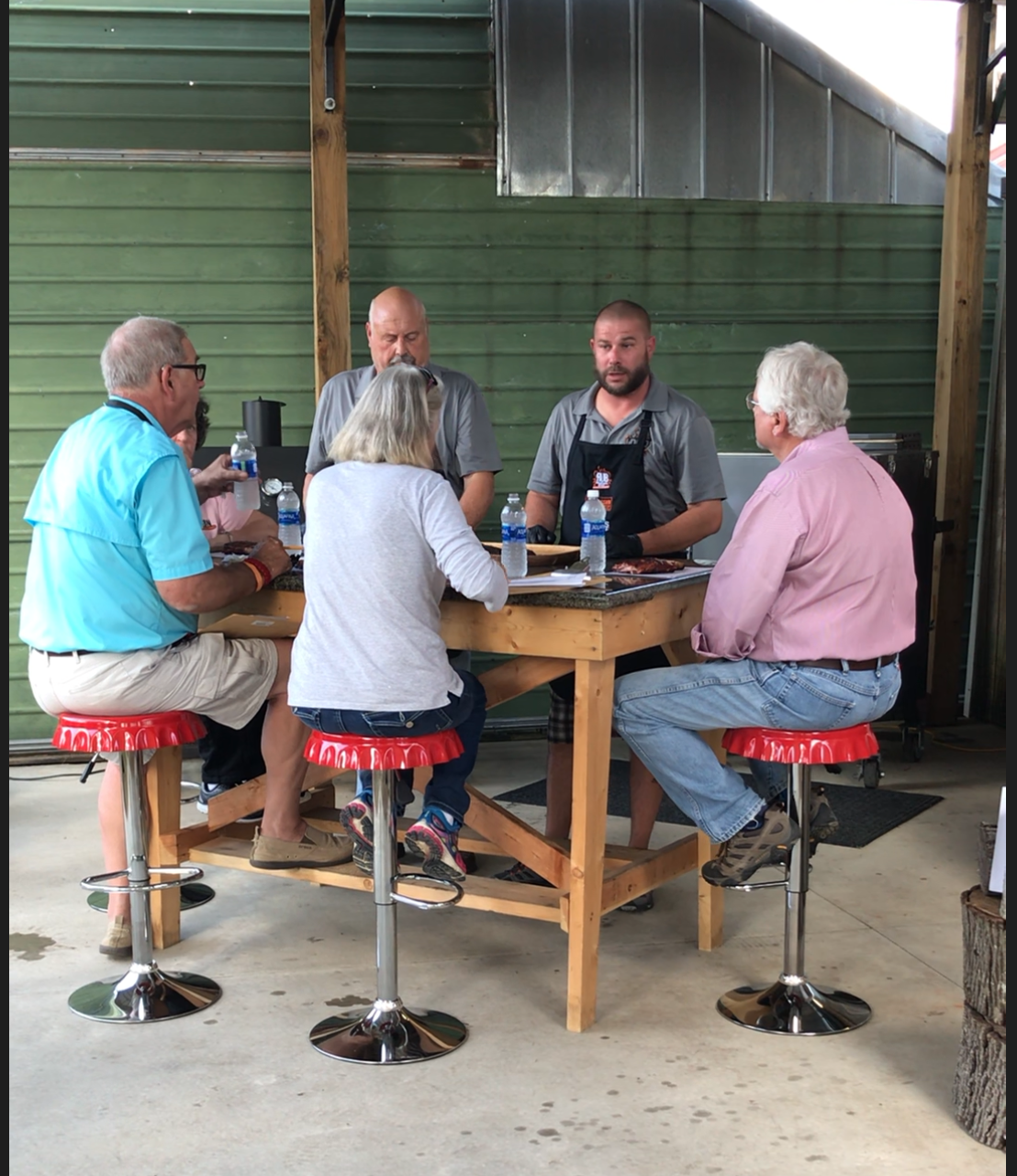 Four judges will visit the top three whole hog, ribs and shoulder teams. Each team will only have 15 minutes to present their cook site and their meat. Teams are notified of what time the judges will arrive, which usually allows for about an hour for preparation.